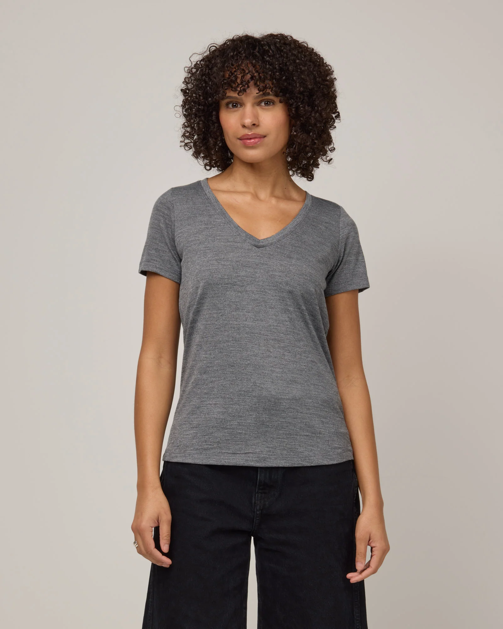 Sizing tip: The Morgan V-neck Tee is regular fit. Not too snug or too loose. Has a little extra ease to skim over the body.